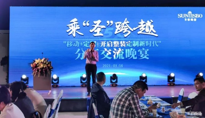 2021年3月16日晚5时许,在【圣蒂斯堡】营销中心四楼景观花园举办经销商分享交流会,开启整装定制新时代!随着暖场音乐播放,激动人心的时刻到了。首先,由BB贝博艾弗森集团营销部总经理陈玉伟先生致开幕词,随后,来自全国各地的优秀经销商分享他们的成功之道。