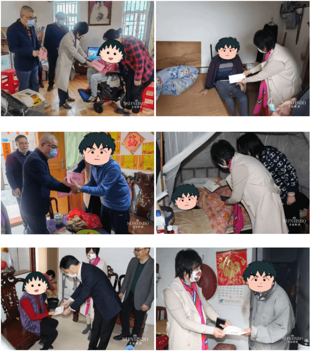 在各社区干部与BB贝博艾弗森集团副董事长梁碧霞女士的带领下,我们带着爱心满满的新年礼品与祝福,来到集团制造中心所在地的各个社区,并亲切慰问了他们日常生活、身体情况以及存在的具体困难,认真倾听他们的心声,叮嘱他们在疫情期间一定要做好防疫并保重身体。通过慰问互动,进一步拉近了企业与社区群众之间的距离,体现了圣蒂斯堡品牌企业知恩图报回馈社会的行动和初心,体现了一个具有大爱觉悟企业的责任心和使命感。